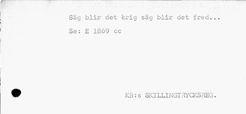 //// - //// Säg blir det krig säg blir det fred... Se: E 1869 cc //// ® KB:s SKILLINGTRYCKS REG. ////