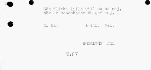 //// Säg flicka lilla vill du ha mej, här är handskarne du gaf mej, //// W Nr 21. 1 str. Mel. //// EGGELING JUL //// 7 ////