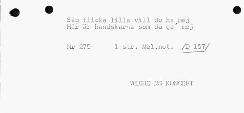 //// Säg flicka lilla vill du ha mej Här är handskarna som du ga' mej //// Nr 275 1 str. Mel.not. /D 157/ //// WIEDE MS KONCEPT ////