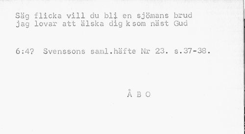 //// Säg flicka vill du bli en sjömans brud jag lovar att älska dig k som näst Gud //// 6:4? Svenssons saml.häfte Nr 23. s.37-38. //// ÅBO ////
