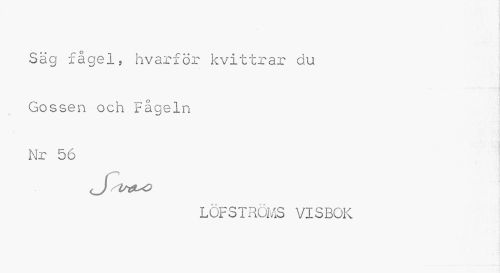 //// Säg fågel, hvarför kvittrar ciu Gossen och Fågeln Nr 56 //// LÖFSTRÖMS VISBOK ////