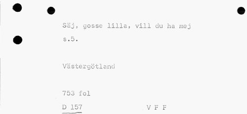 //// Säj, gosse lilla? vill du ha mej //// ^^ s.5. //// Västergötland 753 fol //// D 157 . V F F ////