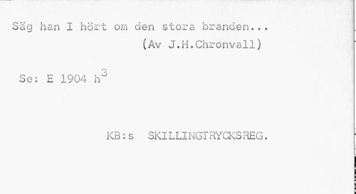 //// Säg han I hört om den stora branden. //// (Av J.H.Chronvall) //// Se: E 1904 h3 //// KB:s SKILLINGTRYCKSREG. //// » ////