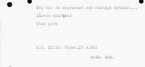 //// Säg har du begrundat och riktigt betänkt... (Årets skiften) Utan prov //// E.U. 21118. Visor,IV s.551 //// no rd. mus. ////