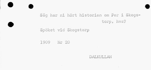 //// Säg har ni hört historien om Per i Skogs- //// •torp, hva? //// Spöket vid Skogstorp 1909 Nr 20 //// DALKULLAN //// » ////