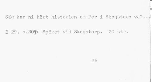 //// Säg har ni hört historien om Per i Skogstorp va?... //// i //// » i B 29, s. 30fj Spöket vid Skogstorp. 20 str. //// i //// RA ////