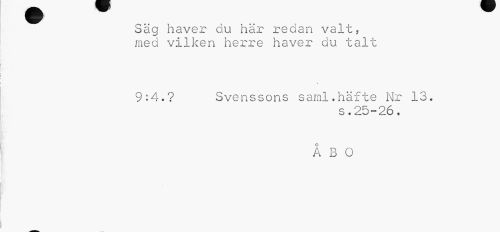 //// Säg haver du här redan valt, //// med vilken herre haver du talt //// » //// 9:4.? Svenssons saml.häfte Nr 13. //// s.25-26. //// ÅBO ////
