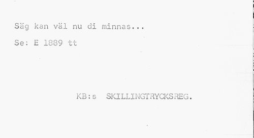 //// i //// i //// Säg kan väl nu dl minnas... //// Se: E 1889 tt //// KB:s SKILLINGTRYCKSREG. //// « ////