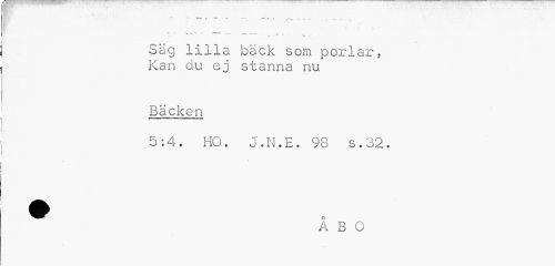 //// * * » ? • //// Wt'' ' A- //// « r» ' //// Säg lilla bäck som porlar. //// Kan du ej stanna nu //// Bäcken //// 5:4. HO. J.N.E. 98 s.32. //// ^ Å B O ////