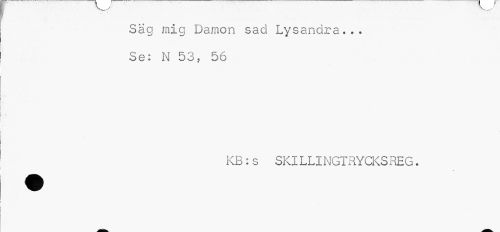 //// Säg mig Damon sad Lysandra.*. Se: N 53, 56 //// KB:s SKILLINGTRYCKSREG. ////