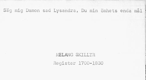//// Säg mig Damon sad Lysandra, Du min ömhets enda mål : //// MELANG SKILLTR //// Register 1700-1830 ^ ////