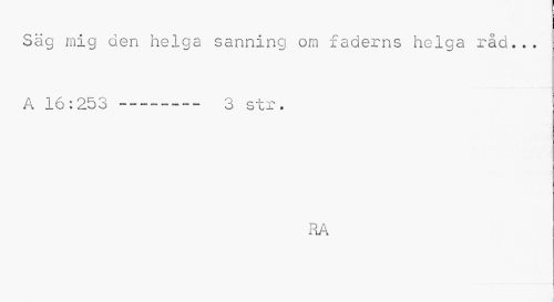 //// Säg mig den helga sanning om faderns helga råd... A 16:253 --- 3 str. //// RA //// j ////