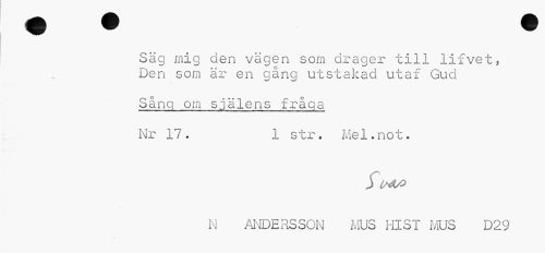 //// Säg mig den vägen som drager till lifvet, Den som är en gång utstakad utaf Gud //// Sång om själens fråga //// Nr 17. 1 str. Me1•no t. //// i iM/> //// N ANDERSSON MUS HIST MUS D29 ////