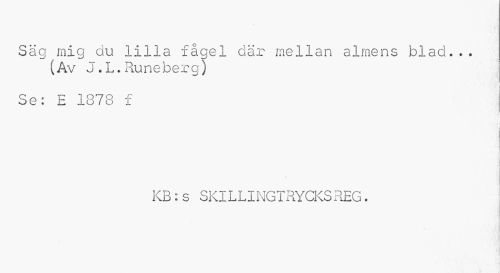 //// Säg raig du lilla fågel där mellan almens blad. . . (Av J.L.Runeberg) //// Se: E 1878 f //// ¦ //// \ //// i //// KB:s SKILLINGTRYCKS REG. ////