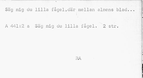 //// Säg mig du lilla fågel,där mellan alrnens blad... A 441:2 a Säg mig du lilla fågel. 2 str. //// RA ////