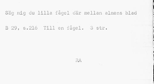 //// i //// . Säg mig du lilla fågel där mellan almens blad : //// B 29, s.216 Till en fågel. 3 str. ; //// ¦ //// i //// f //// r i //// .F ¦ //// t //// RA f //// . //// r ////