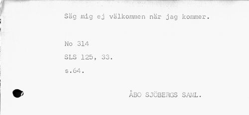 //// ¦mr- • . '* . é» C t ,, //// Säg mig ej välkommen när jag kommer. //// No 314 SLS 125, 33. //// s. 64. //// ÅBO SJÖBERGS SAML. ////
