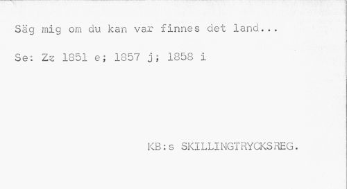 //// Säg mig om du kan var finnes det land... Se: Zz 1851 e; 1857 j; 1858 i //// KB:s SKILLINGTRYCKS REG. ////