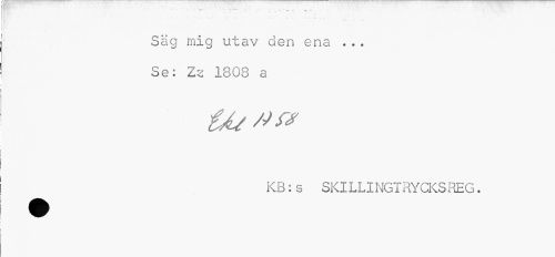 //// • • •> * //// 1 //// Säg mig utav den ena ... Se: Zz 1308 a //// Ut //// KB:s SKILLINGTRYCKS REG. ////