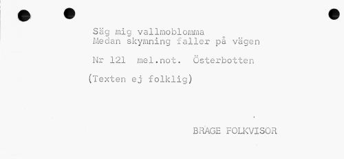 //// Säg mig vallmoblomma //// Medan skymning faller på vägen //// Nr 121 mel.not. Österbotten //// (Texten ej folklig) //// * //// B RÅGE FOLKVISOR ////