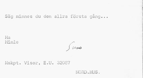 //// ¦ //// Säg minnes du den allra första gång... //// f //// Ha //// Himle //// f u^o //// Mskpt. Visor, E.U. 32087 //// NORD.MUS. ////