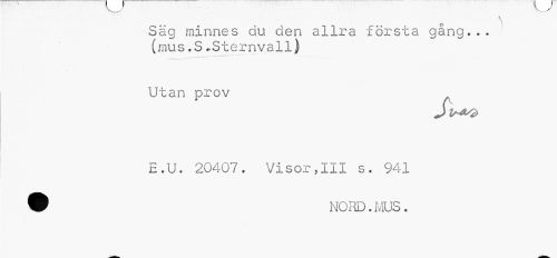 //// \ //// Såg minnes du den allra första gäng... (mus.S-Sternvall) //// Utan prov //// E.U. 20407. Visor,III s. 941 9 NORD. MUS . ////