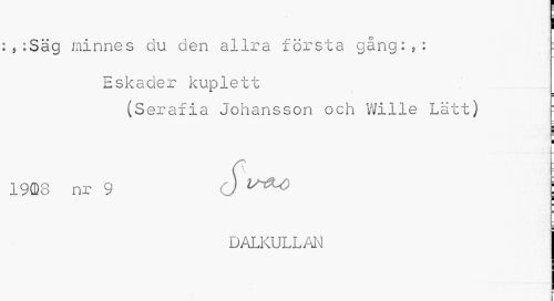 //// ; ,:Säg minnes du den allra första gång:,: ; //// Eskader kuplett //// (Serafia Johansson och Wille Lätt) : //// 19CD8 nr 9 S j //// DALKULLAN ////