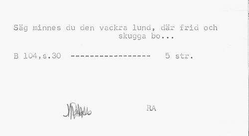 //// Säg minnes du den vackra lund, där frid och //// skugga bo... //// B 104,s.30 ---. — — — — _ 5 str# //// t ////