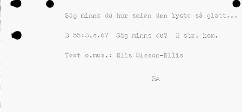 //// Säg minns du hur solen den lyste så glatt... B 55:3 5 s.67 Säg minns du? 2 str. kom. Text o.mus.: Elis Olsson-Ellis //// RA ////