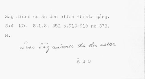 //// i //// Säg minns du än den allra första gång. 8:4 KO. S.L.S. 352 s.913-916 nr 378. N. //// si** A 4 o—^ ^ ^ //// ÅBO ////