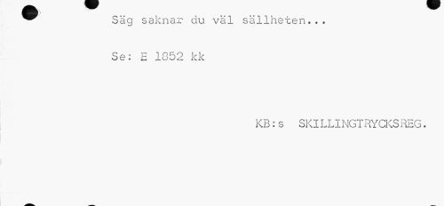 //// 1 w //// ^^ Säg saknar du väl sällheten... //// Se: E 1852 kk //// KB:s SKILLINGTRYCKSREG. ////