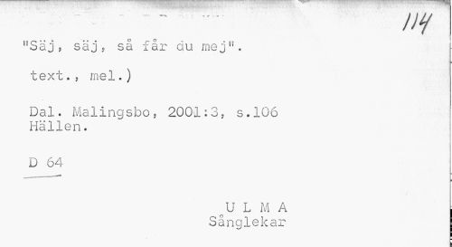 //// - -... /}if //// 11 * • * •• • ? o ^ o * »« //// Saj, saj, sa far au mej1', text., mel.) //// Dal. Malingsbo, 2001:3, s.106 Hällen. //// D 64 //// ^U L M A j //// Sånglekar ////