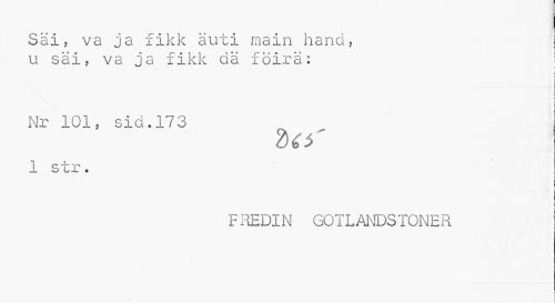 //// Säi, va ja fikk äuti main hand, ' //// u säi, va ja fikk dä föirä: i //// ) //// ; ¦ //// i I i //// J //// t //// i //// Nr 101, sid.173 1 str. //// i i //// t i //// fhedin gotlandstoner i //// > ////
