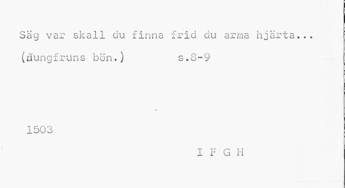 //// i //// Säg var skall du finna frid du arma hjärta... (flungfruns bön.) s.S-9 //// 1503 //// I F G H ////