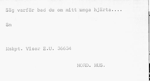 //// Säg varför bad du om mitt unga hjärta... Sm //// Mskpt. Visor E.U. 36634 //// NORD. MUS. | ////
