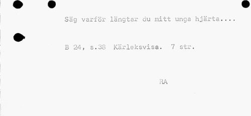 //// Säg varför längtar du mitt unga hjärta... B 24? s.38 Kärleksvisa. 7 str. //// RA ////
