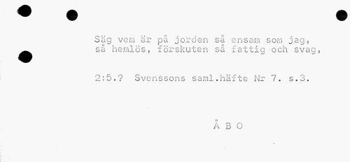 //// Säg ve ra är på jorden så ensam som jag , ^ så hemlös, förskuten så fattig och svag, //// 2:5.? Svenssons saml.häfte Nr 7. s.3. //// \ //// ÅBO ////