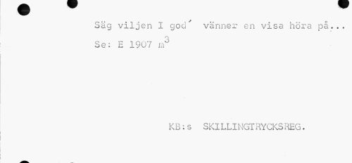 //// Säg viljen I god' vänner en visa höra på... //// O //// Se: E 1907 m° //// KB:s SKILLINGTRYCKSREG. ////