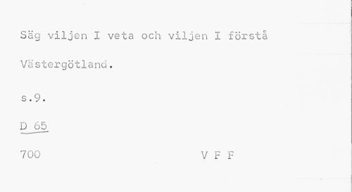 //// Säg viljen I veta och viljen I förstå Västergötland. //// s.9. //// DJ55 //// i //// 700 V F F : ////