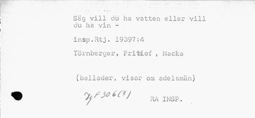 //// : 7 r - '** ^ « //// Säg vill du ha vatten eller vill du ha vin - //// insp.Rtj. 19397:4 Törnberger, FriMof , Nacka //// (ballader, visor om adelsmän) f é/ RA INSP. ////