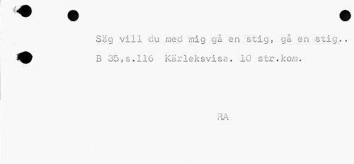 //// Säg vill du med mig gå en stig, gå en stig.. B 35,s.116 Kärleksvisa. 10 str.kom. //// RA ////