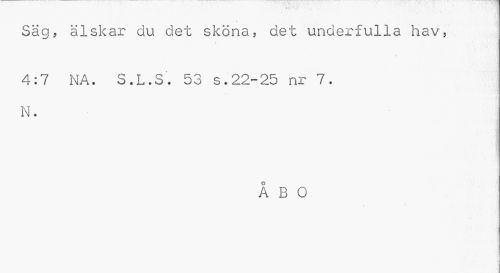 //// Säg, älskar du det sköna, det underfulla hav, //// 4:7 NA. S.L.S'. 53 s.22-25 nr 7. N. //// ÅBO //// Ji i ////