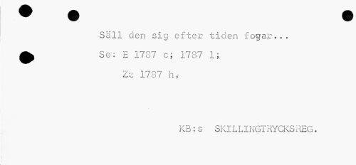 //// Säll den sig efter tiden fogar... ^ Se: E 1737 c; 1787 1; //// Zy 1787 h, //// KB:s SKILLINGTRYCKS REG. ////