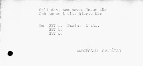 //// p. • //// fl*. • M. " I . //// Säll den5 som haver Jesum kär Och honom i sitt hjärta bär //// Da 237 a, Psalm* 1 str. 237 b , 237 c 5 //// c //// ^ ANDERSSON SV.LÅTAR ////