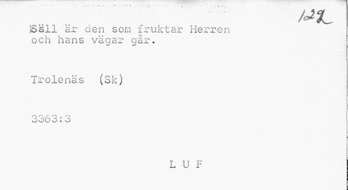 //// Esll är den som fruktar Herren och hans vägar går. //// Trolenäs (Sk) //// o o ^ O //// 8Jöo:o //// L U F ////