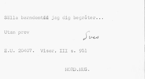 //// Sälla barndomtiöl jag dig begråter... Utan prov //// c) ^^ //// E.U. 20407. Visor, III s. 951 //// NORD.MUS. ////