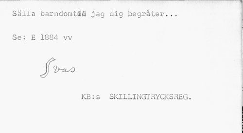 //// Sälla barndomtiM jag dig begråter... Se: E 1884 vv //// KB:s SKILLINGTRYCKSREG. ////