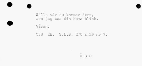 //// Sälla vår du kommer åter, ren jag ser din ömma blick. //// ^^ Våren. //// 5:8 EE. S.L.S. 270 s.29 nr 7. //// ÅBO ////