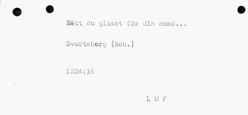 //// Sätt du glaset för din mund... Svarteberg (Boh.) //// 1324:16 //// v //// L U F ////
