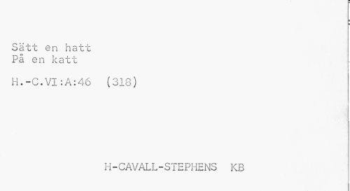 //// Sätt en hatt På en katt //// H.-C.VI:A:46 (318) //// H-CAVALL-STEPHENS KB ////